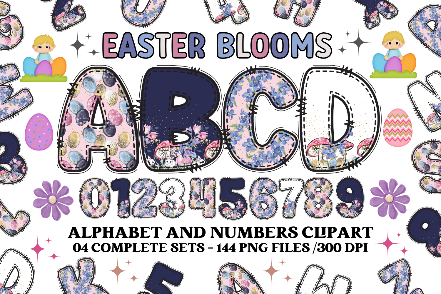 Easter Blooms Alphabet & Numbers Clipart PNG Set