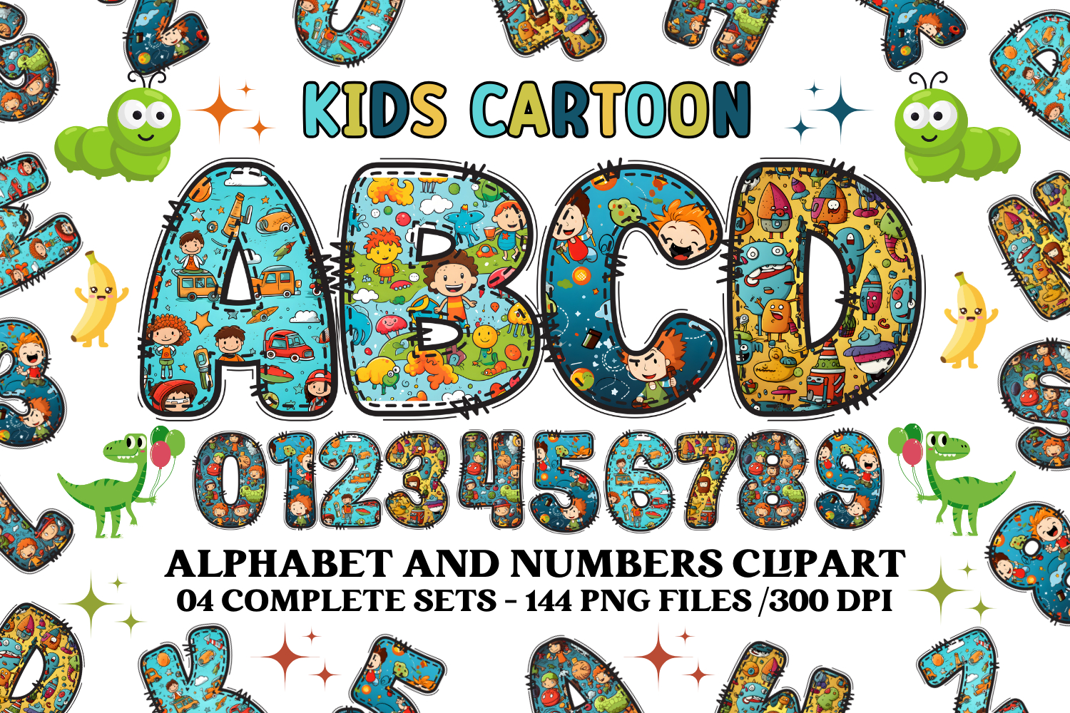 Similar Design Products to Kids Cartoon Alphabet clipart, kids cartoon letters doodle