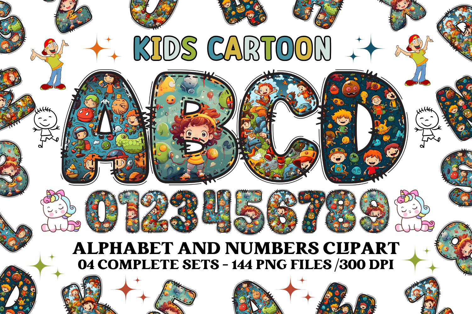 Kids Cartoon Alphabet clipart, kids cartoon letters doodle