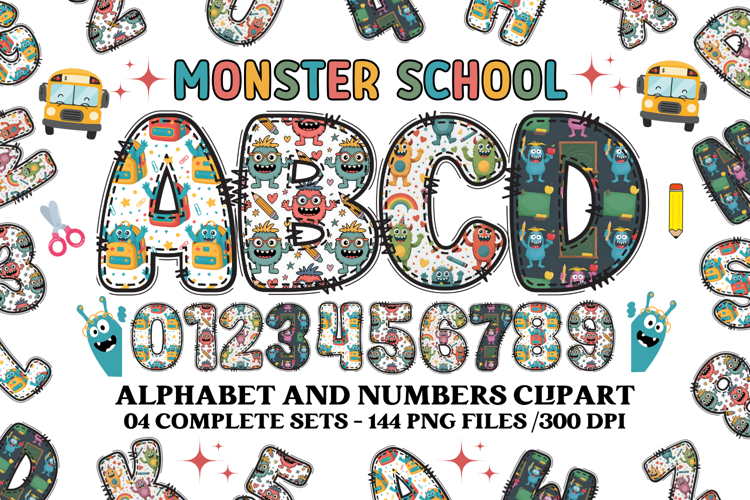 Similar Design Products to CUTE MONSTER SCHOOL Alphabet A-Z Numbers Clipart PNG 300 DPI