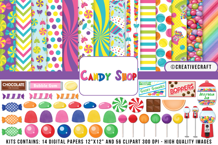 Similar Design Products to CANDY SHOP Clipart & Digital Papers Kids Sweet Bundle PNG