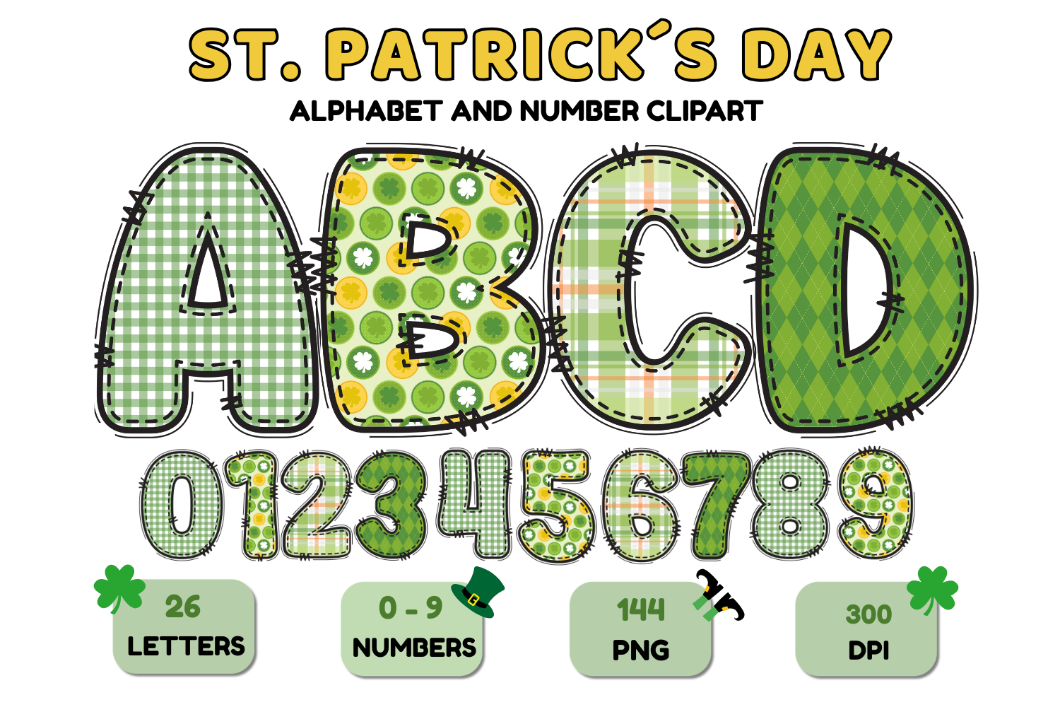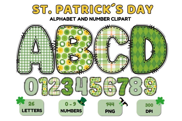 Similar Design Products to ST PATRICK Alphabet PNG Clipart, St Patrick letters doodle