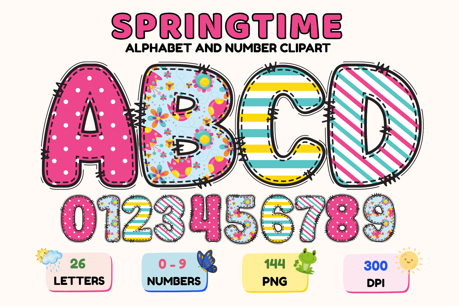 Springtime Alphabet png, letters doodle, springtime clipart example image 1