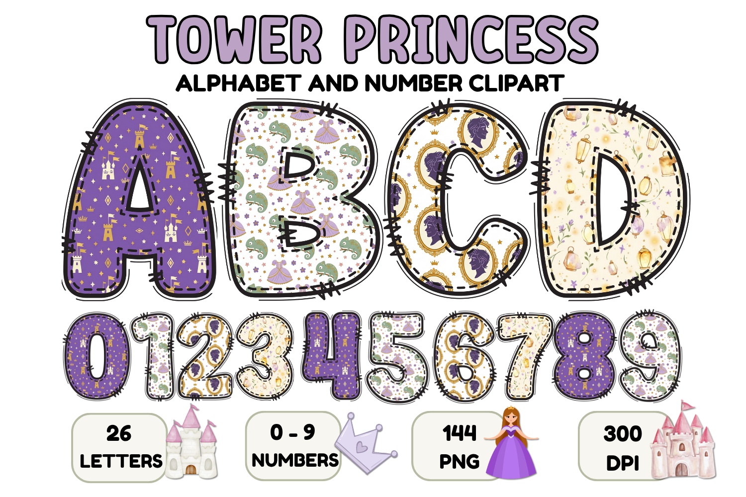 Tower Princess Alphabet Clipart PNG, Letters doodle 300 DPI