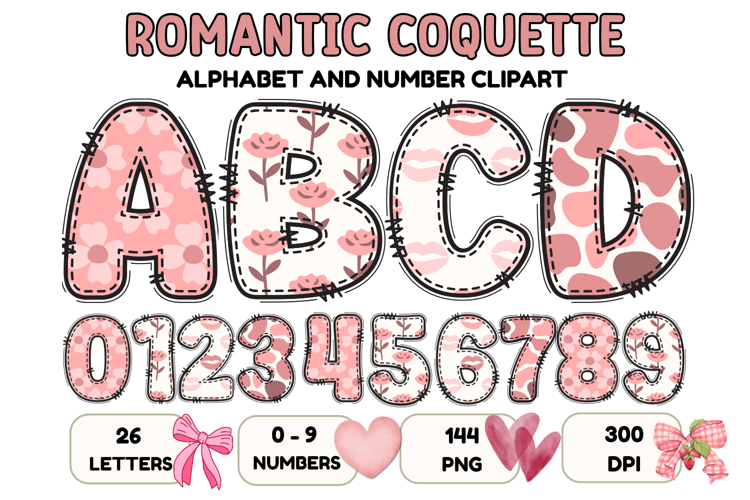 Romantic Coquette Alphabet PNG Letters & Numbers 300DPI