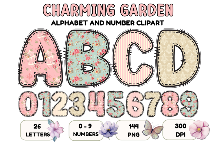 Charming Garden Doodle Alphabet PNG Letters & Numbers 300DPI