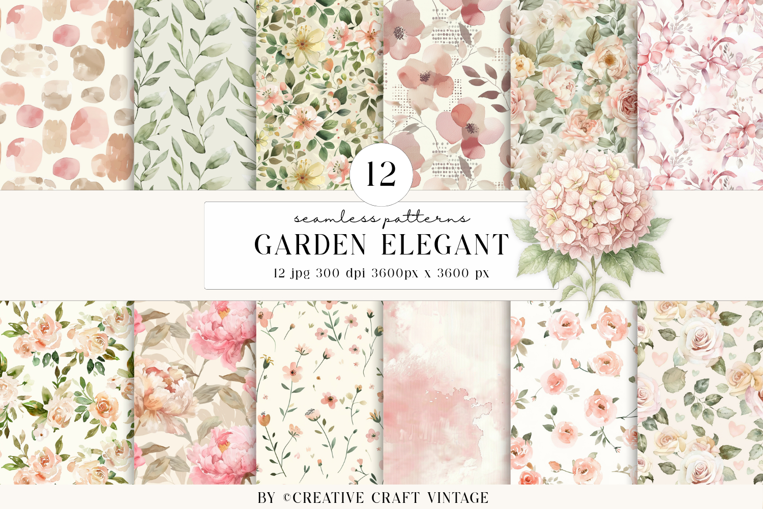 Garden Flowers Seamless Patterns, vintage scrapbooking example image 1
