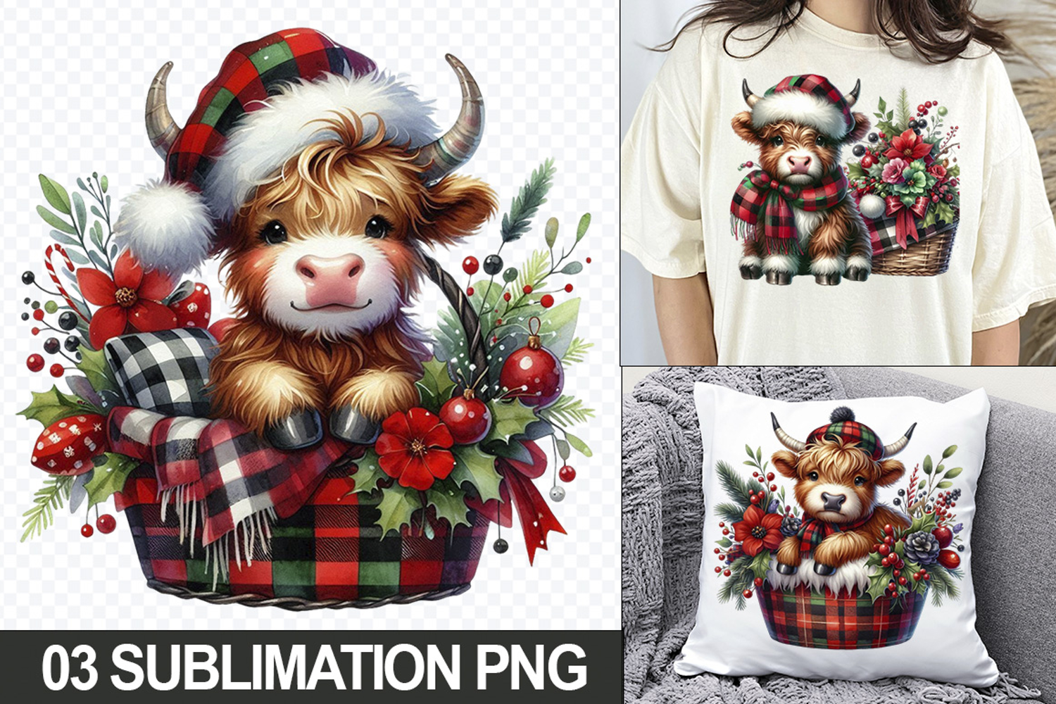 Similar Design Products to Christmas Cow Sublimation Clipart, 04 PNG Designs