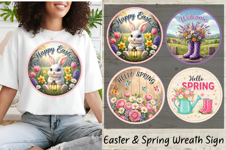 Similar Design Products to Happy Easter & Spring Wreath Sign PNG