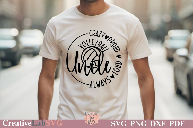 Crazy Proud Always Loud Volleyball Uncle SVG and DXF are ideal for cutting machines like the Cricut and Silhouette. It's perfect for making volleyball uncle shirts and sweatshirts. It also comes in PNG files, perfect for HTV, vinyl, or sublimation.