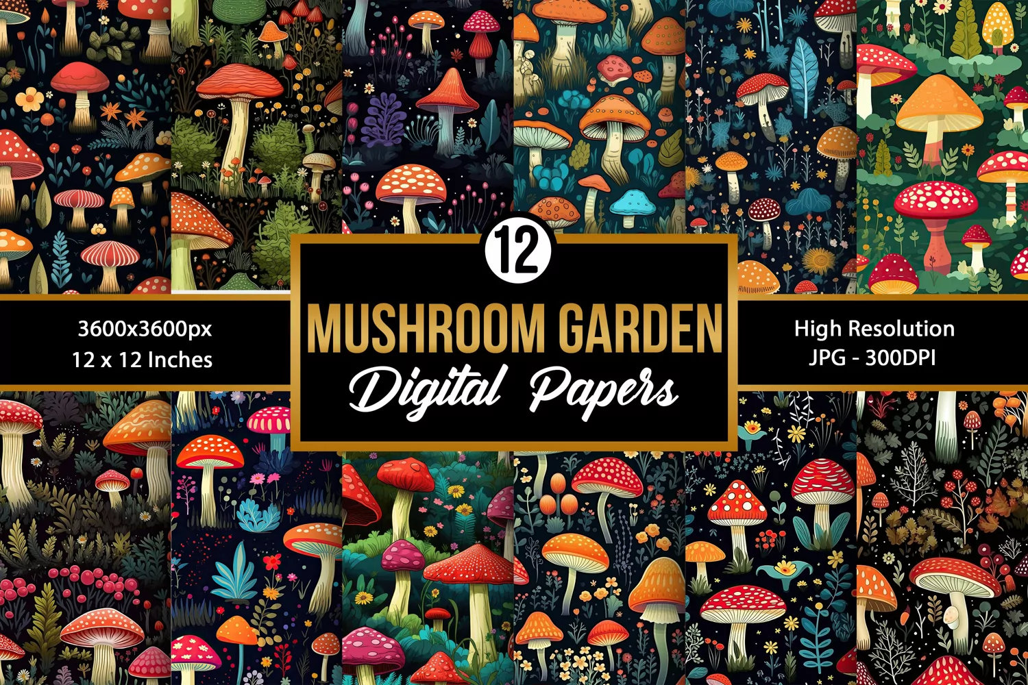 12 Mushroom Garden Seamless Pattern Digital Papers