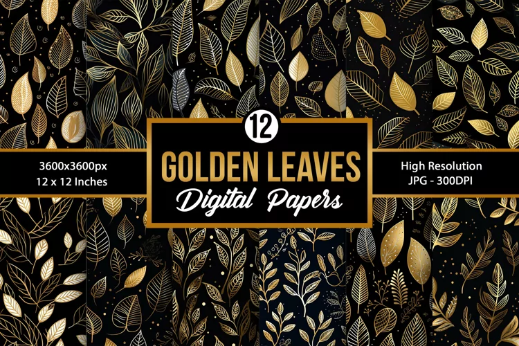 Golden Leaves Scrapbook Papers Gold Leaf Leaves Pattern Leaves Digital Paper Hand Drawn Leaves Gold Leaf Pattern Cute Leaves Golden Leaf Background