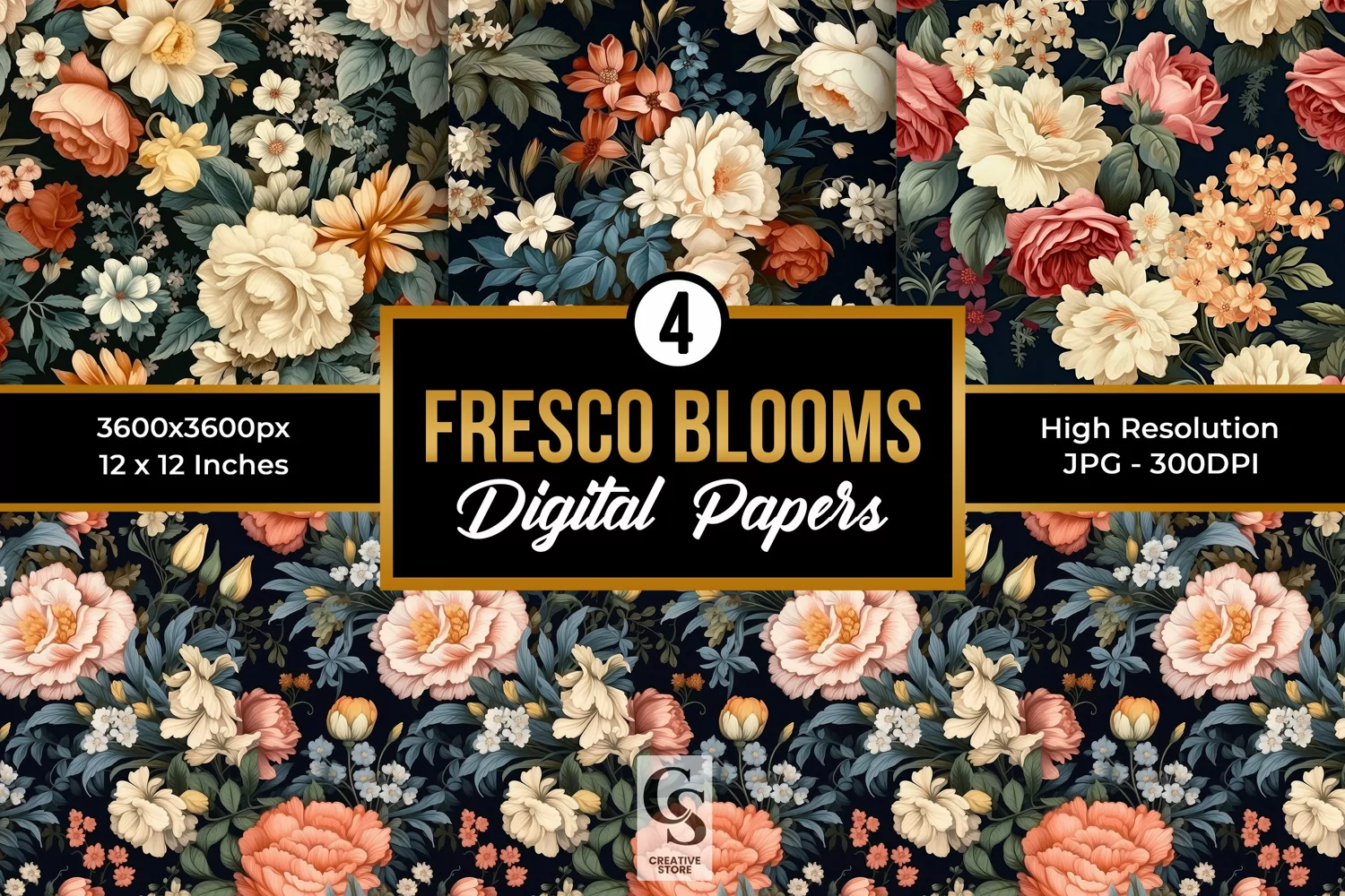 4 Fresco Blooming Flowers Seamless Patterns