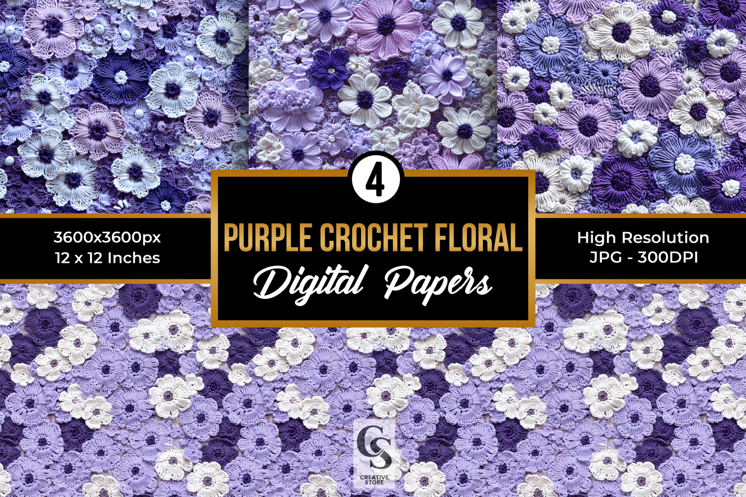 Digital Paper White Flowers Vintage Floral Purple Floral Delicate Flowers Handmade Pattern Crochet Flowers Seamless Crochet Soft Floral Print Yarn Flowers