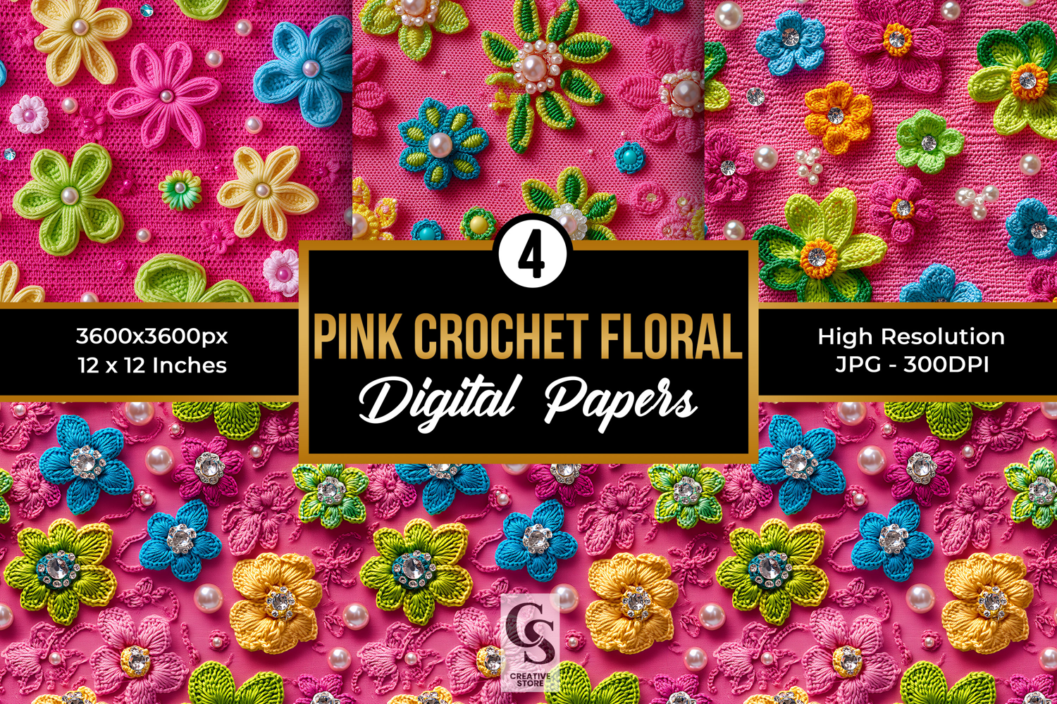 Similar Design Products to Pink Summer Crochet Flowers Digital Paper