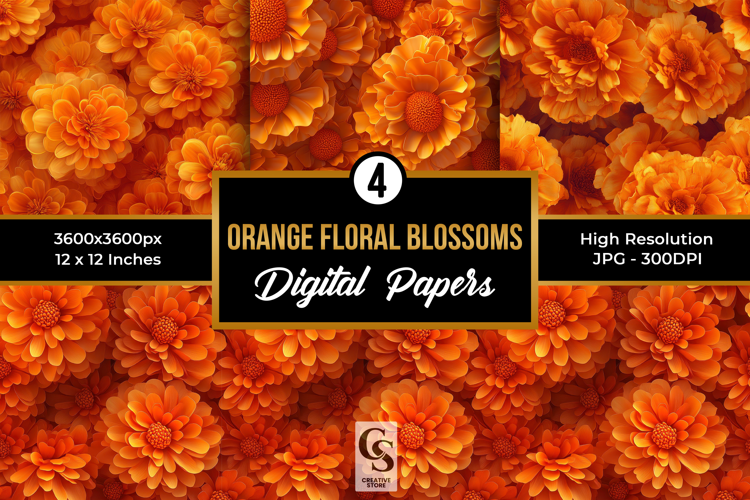Orange Floral Blossoms Digital Paper