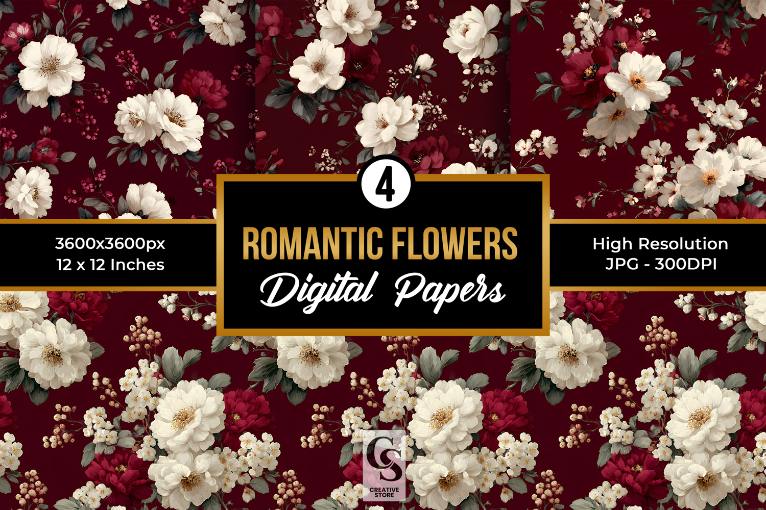 Similar Design Products to Cream and Burgundy Romantic Flowers Digital Paper
