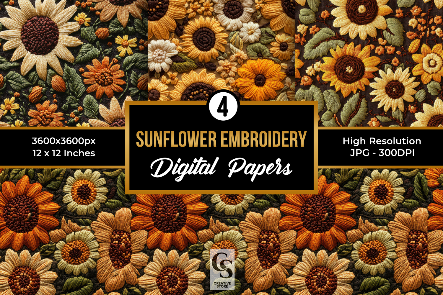 Similar Design Products to Sunflower Embroidery Digital Paper Pattern