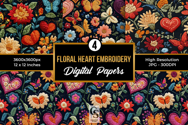 Similar Design Products to Floral Heart Embroidery Digital Paper Pattern