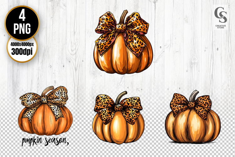 4 Leopard Bow Pumpkin Clipart PNG Files Perfect for Greeting Cards, Invitations, Junk Journal, Party Decor, Scrapbooking and many other craft projects.