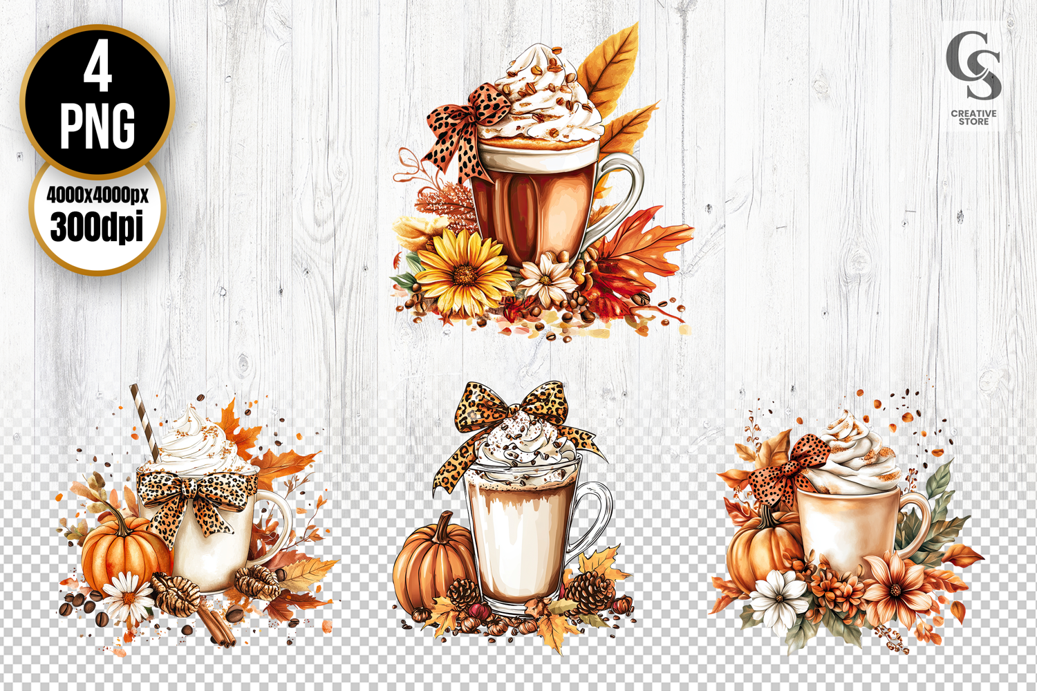 4 Leopard Bow Autumn Coffee Clipart PNG Files Perfect for Greeting Cards, Invitations, Junk Journal, Party Decor, Scrapbooking and many other craft projects.