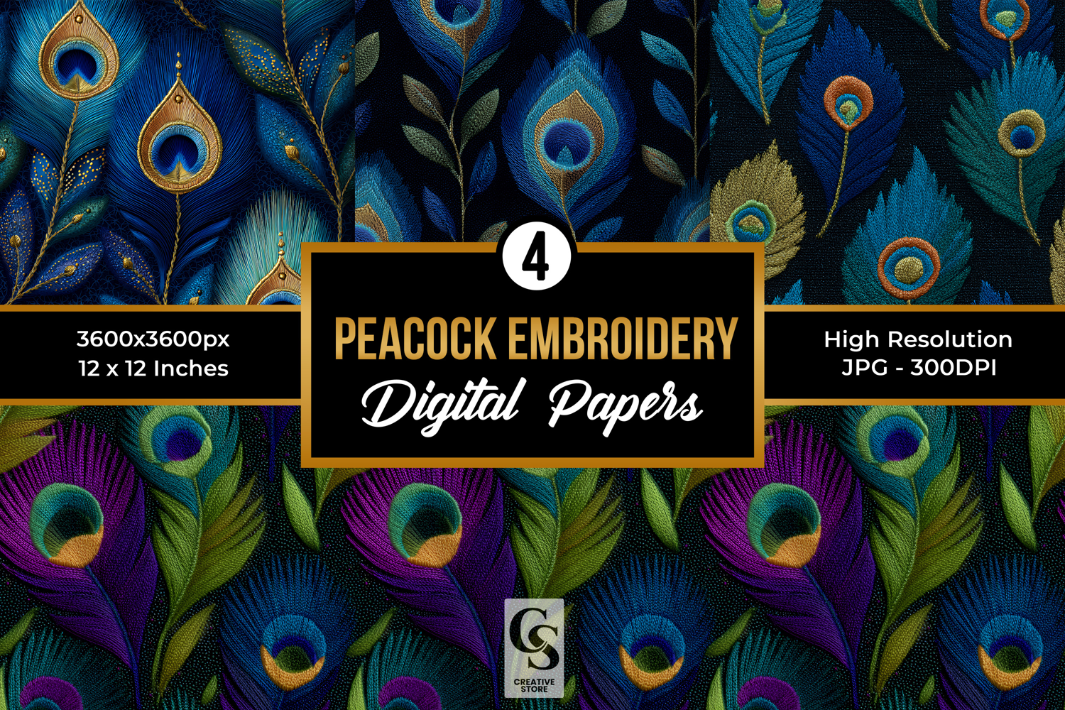 Similar Design Products to Peacock Feather Embroidery Digital Papers