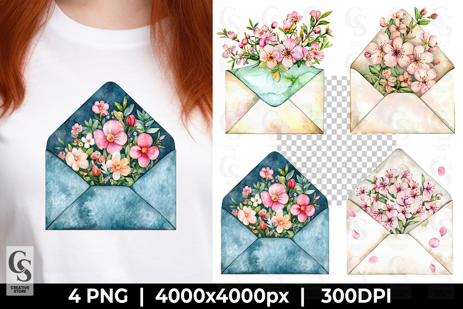 4 Floral Envelope Clipart PNG Files Perfect for Greeting Cards, Invitations, Junk Journal, Party Decor, Scrapbooking and many other craft projects.