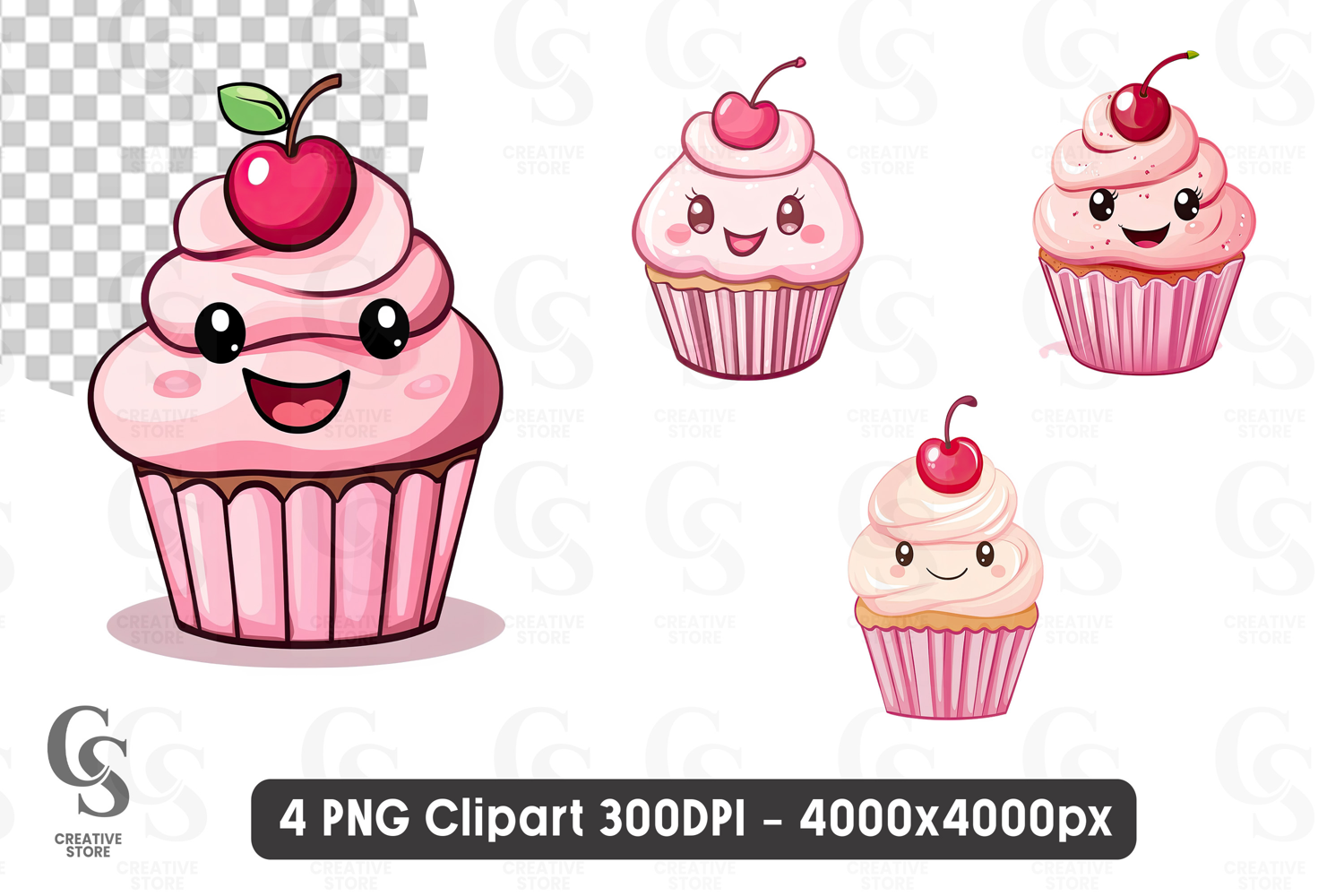4 Cute Cupcake Clipart PNG Files Perfect for Greeting Cards, Invitations, Junk Journal, Party Decor, Scrapbooking and many other craft projects.