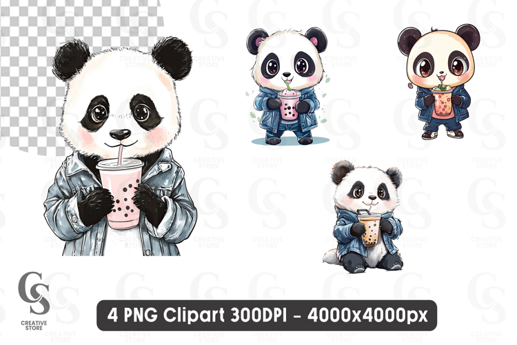 4 Cute Kawaii Panda with Bubble Tea Cartoon Animal Bundle clipart sublimation png Files Perfect for Greeting Cards, Invitations, Junk Journal, Party Decor, Scrapbooking and many other craft projects.