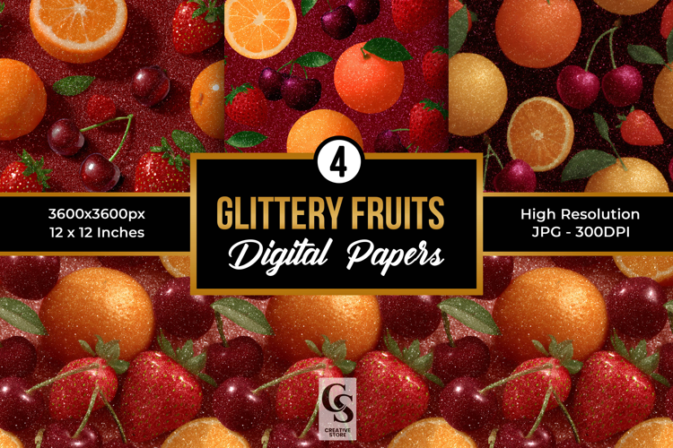 Summer Fruits Digital Paper Citrus Fruit Scrapbook Paper Glitter Fruit Background Fruity Seamless Pattern Tropical Fruit Digital Download Glitter Watermelon Paper Sparkly Fruit Design Glitter Strawberry Pattern Fruity Paper Pack Glittery Fruit Wallpaper