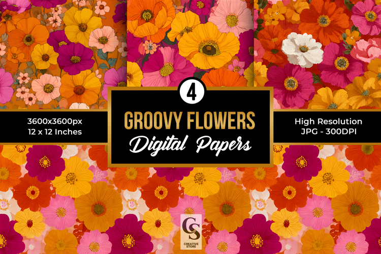 Bright Groovy Flowers Digital Papers