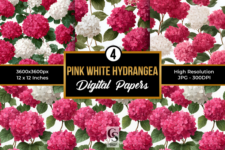 Similar Design Products to Pink and White Hydrangea Flowers Digital Paper