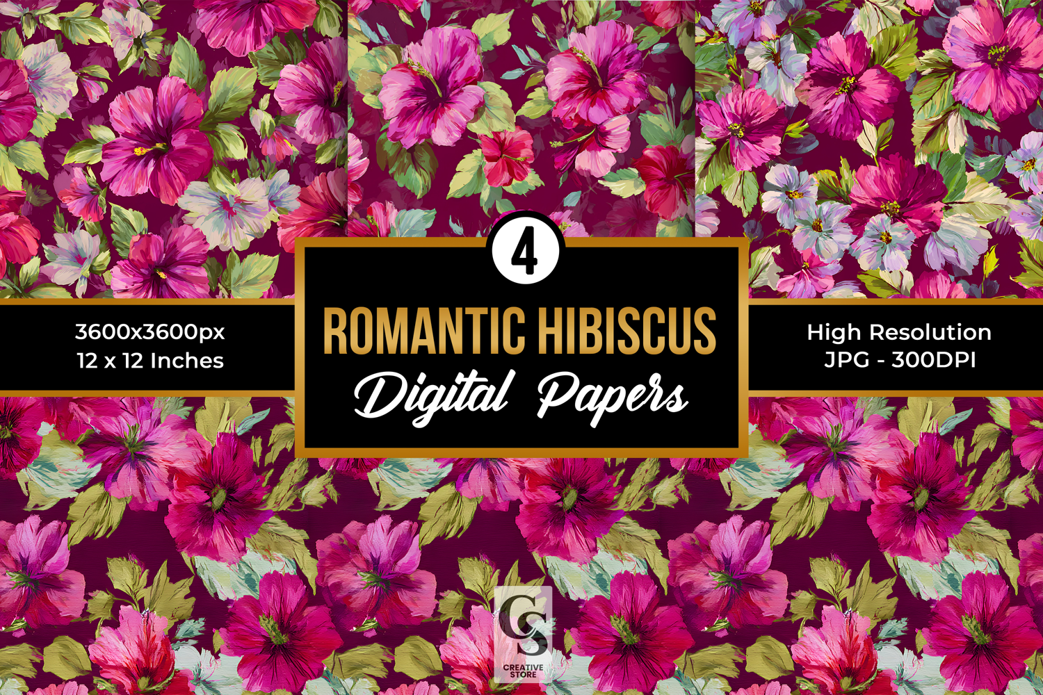Romantic Floral Background Summer Tropical Flowers Floral Craft Supplies Hibiscus Scrapbook Paper Hibiscus Flower Paper Tropical Hibiscus Pattern Hibiscus Seamless Design Exotic Flower Printable Pink Hibiscus Wallpaper Hibiscus Digital Pack