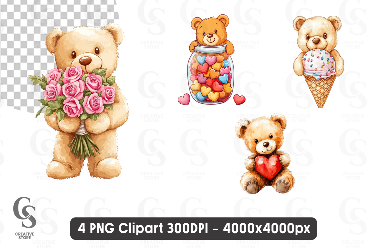 4 Teddy Bear Love Clipart Bundle PNG Perfect for Greeting Cards, Invitations, Junk Journal, Party Decor, Scrapbooking and many other craft projects.