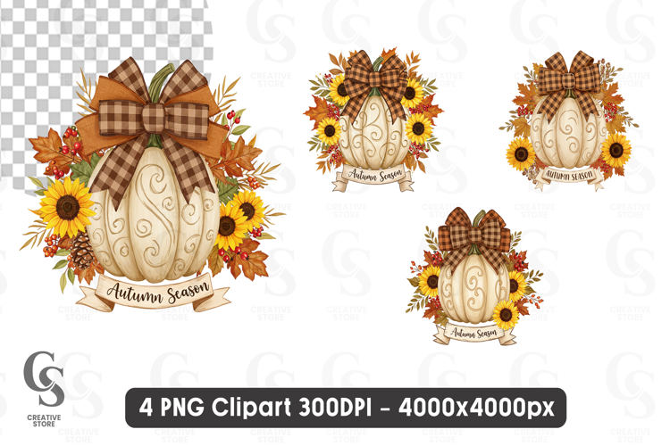 4 Autumn Season Pumpkin Sunflower Clipart Sublimation PNG Files Perfect for Greeting Cards, Invitations, Junk Journal, Party Decor, Scrapbooking and many other craft projects.