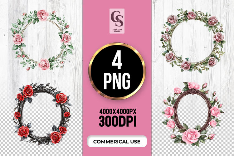 4 Vintage Floral Frame PNG Set Files Perfect for Greeting Cards, Invitations, Junk Journal, Party Decor, Scrapbooking and many other craft projects.