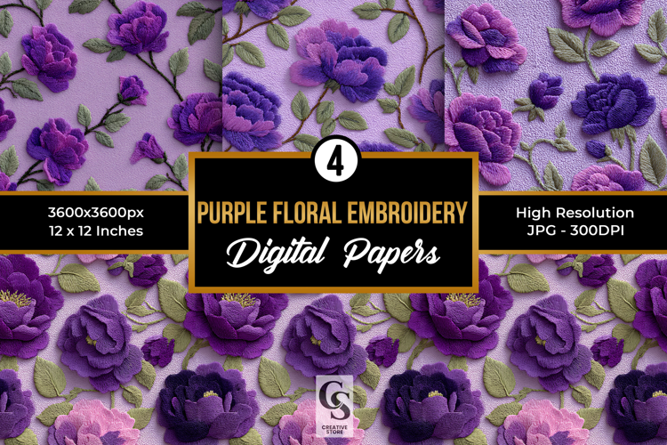 Similar Design Products to Purple Flowers Embroidery Digital Paper