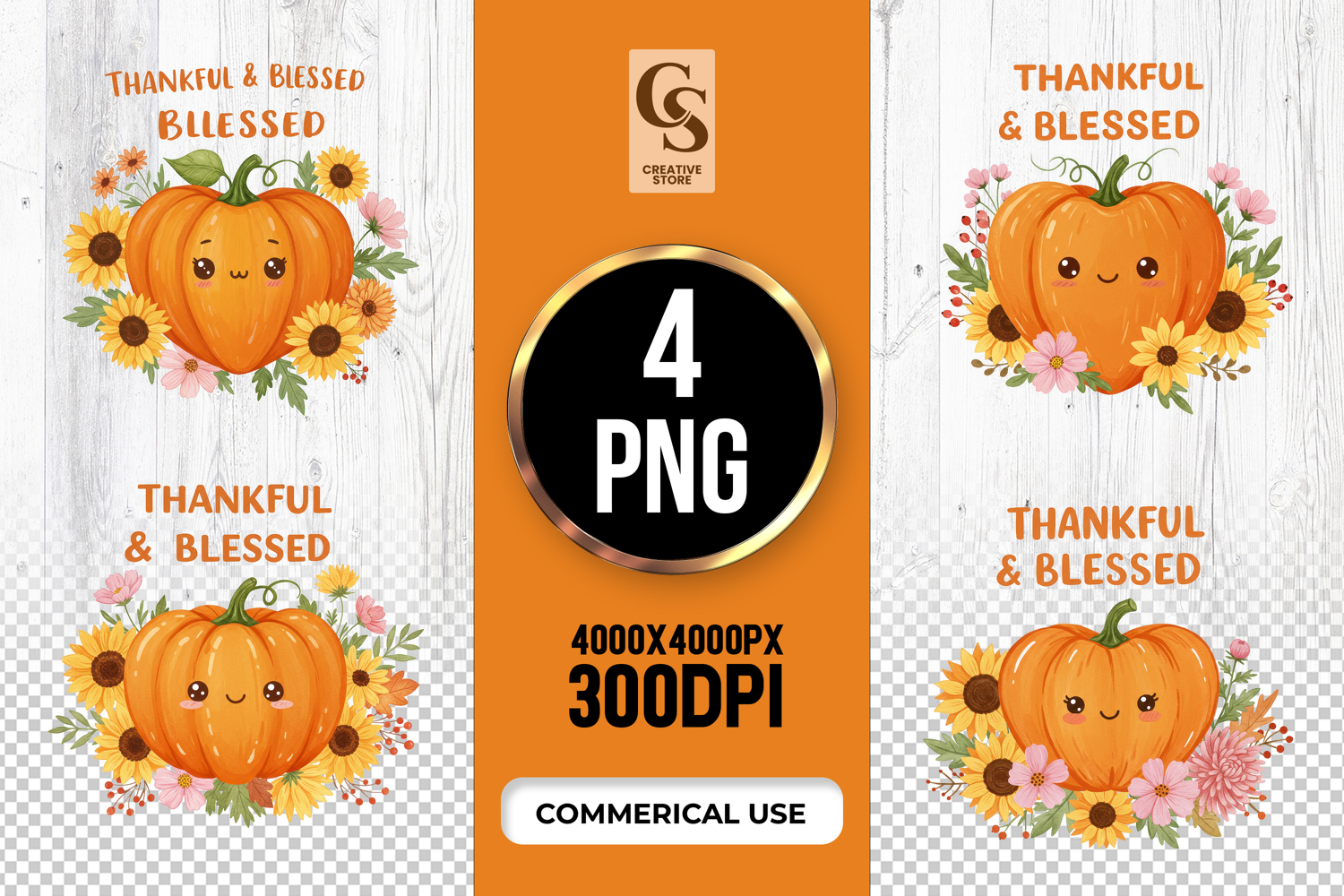 4 Thankful And Blessed Pumpkin Clipart Sublimation PNG Files Perfect for Greeting Cards, Invitations, Junk Journal, Party Decor, Scrapbooking and many other craft projects.