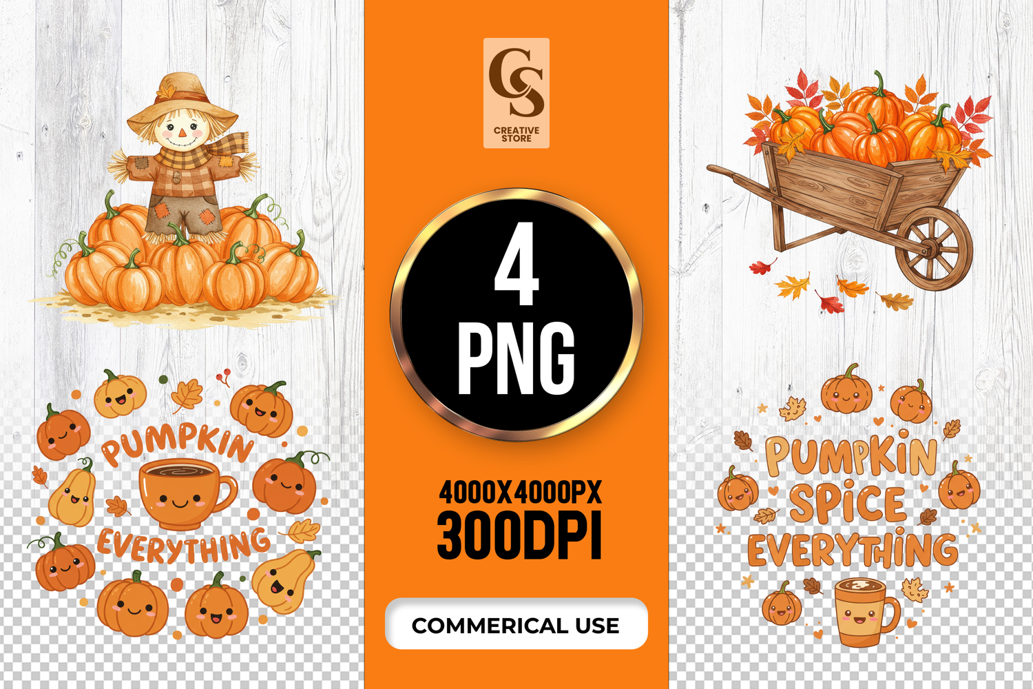 4 Pumpkin Spice Farm Clipart Sublimation PNG Files Perfect for Greeting Cards, Invitations, Junk Journal, Party Decor, Scrapbooking and many other craft projects.