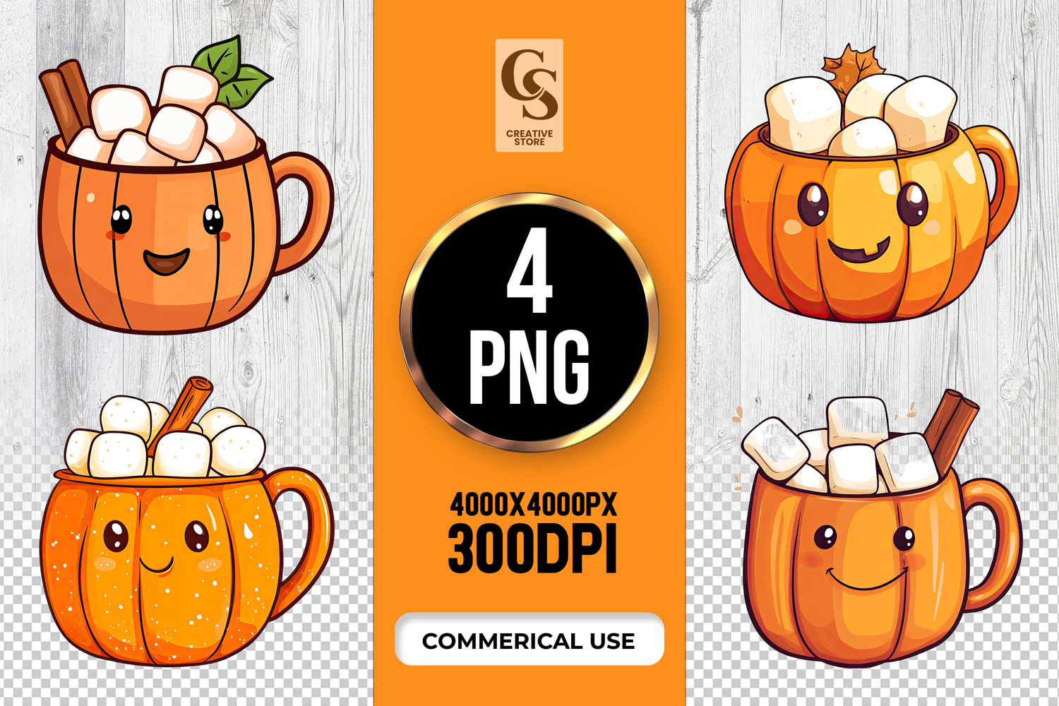 4 Pumpkin Mug Clipart Sublimation PNG Files Perfect for Greeting Cards, Invitations, Junk Journal, Party Decor, Scrapbooking and many other craft projects.