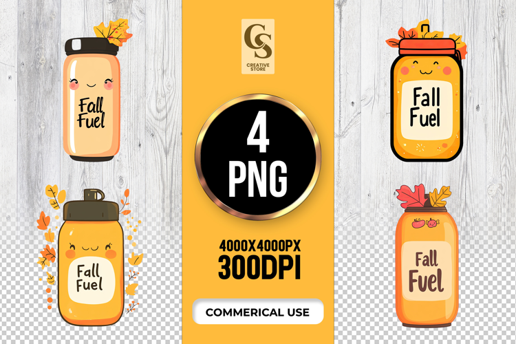 4 Fall Fuel Clipart Sublimation PNG Files Perfect for Greeting Cards, Invitations, Junk Journal, Party Decor, Scrapbooking and many other craft projects.