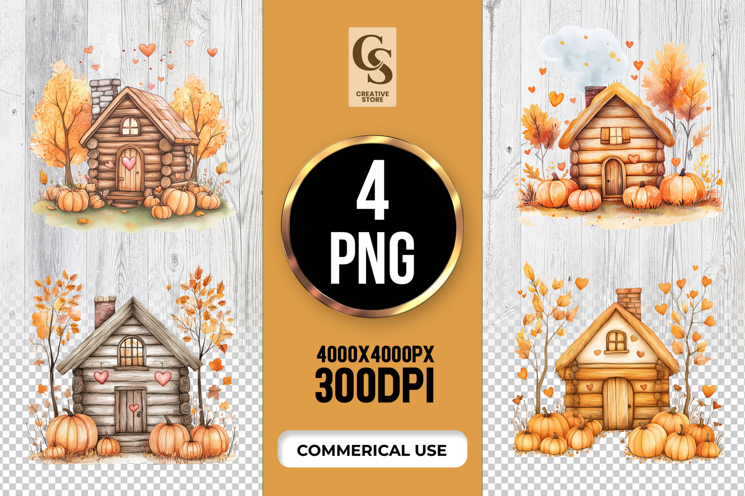 4 Autumn woodland house Clipart Sublimation PNG Files Perfect for Greeting Cards, Invitations, Junk Journal, Party Decor, Scrapbooking and many other craft projects.