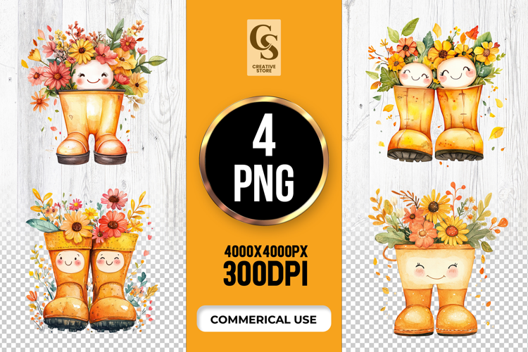4 Fall Boots Flower Clipart PNG Files Perfect for Greeting Cards, Invitations, Junk Journal, Party Decor, Scrapbooking and many other craft projects.