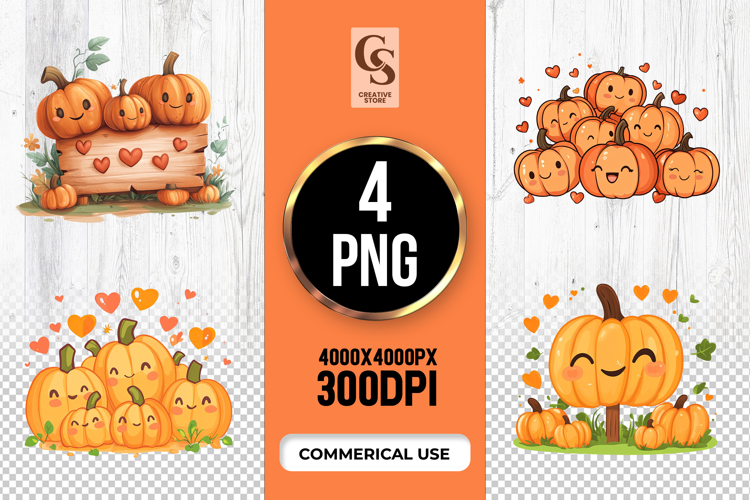 4 Cute Pumpkin Family Clipart Sublimation PNG Files Perfect for Greeting Cards, Invitations, Junk Journal, Party Decor, Scrapbooking and many other craft projects.