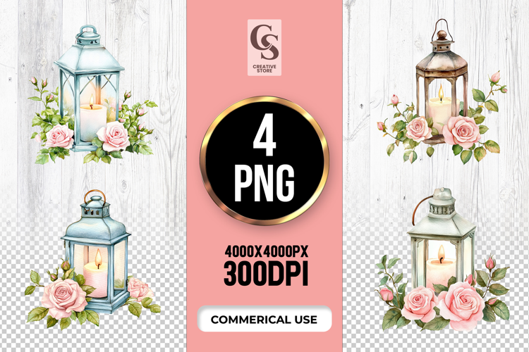 4 Floral Lantern Clipart Sublimation PNG Files Perfect for Greeting Cards, Invitations, Junk Journal, Party Decor, Scrapbooking and many other craft projects.