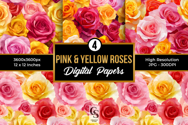 Pink and Yellow Roses Digital Paper Seamless Patterns