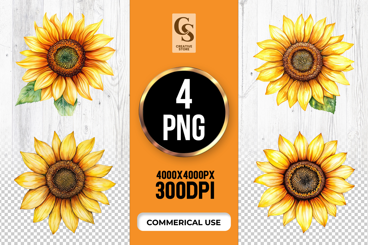 4 Bright Sunflower Floral Clipart PNG Files Perfect for Greeting Cards, Invitations, Junk Journal, Party Decor, Scrapbooking and many other craft projects.