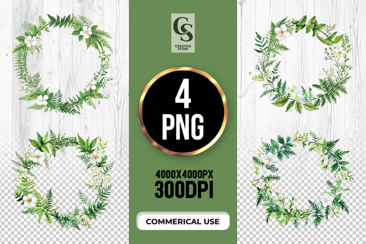 4 Tropical Green Leaf Wreath Clipart PNG Files Perfect for Greeting Cards, Invitations, Junk Journal, Party Decor, Scrapbooking and many other craft projects.
