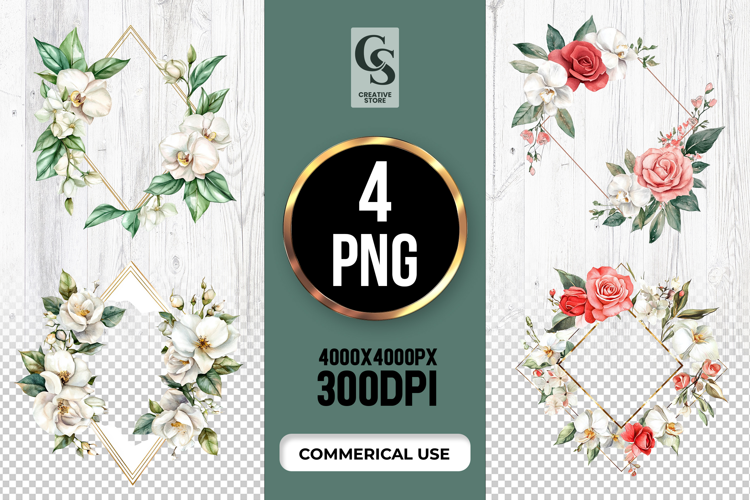 4 Orchid Rose Frame Clipart Sublimation PNG Files Perfect for Greeting Cards, Invitations, Junk Journal, Party Decor, Scrapbooking and many other craft projects.