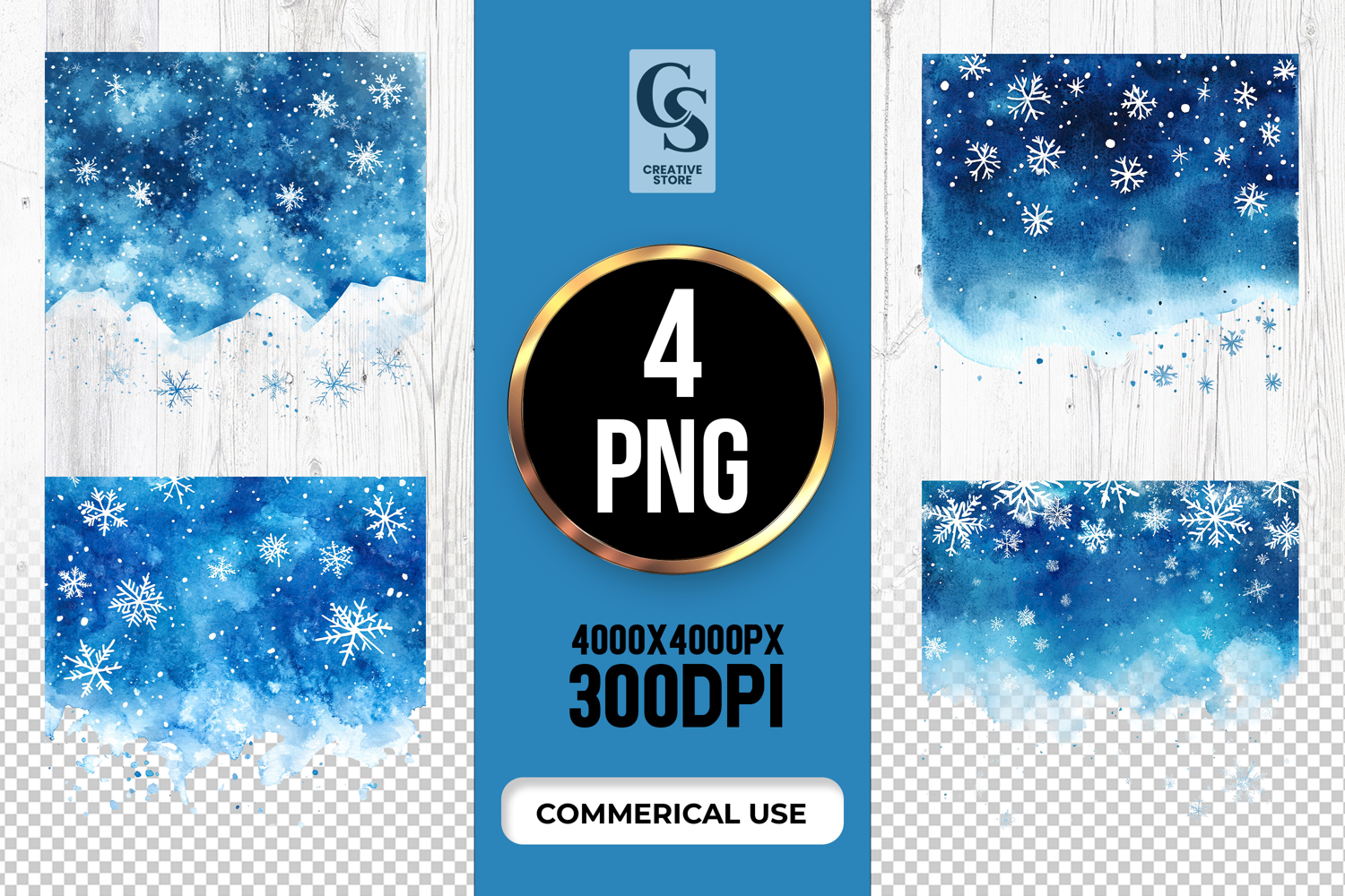 4 Blue Snowflake Background Clipart Sublimation PNG Files Perfect for Greeting Cards, Invitations, Junk Journal, Party Decor, Scrapbooking and many other craft projects.